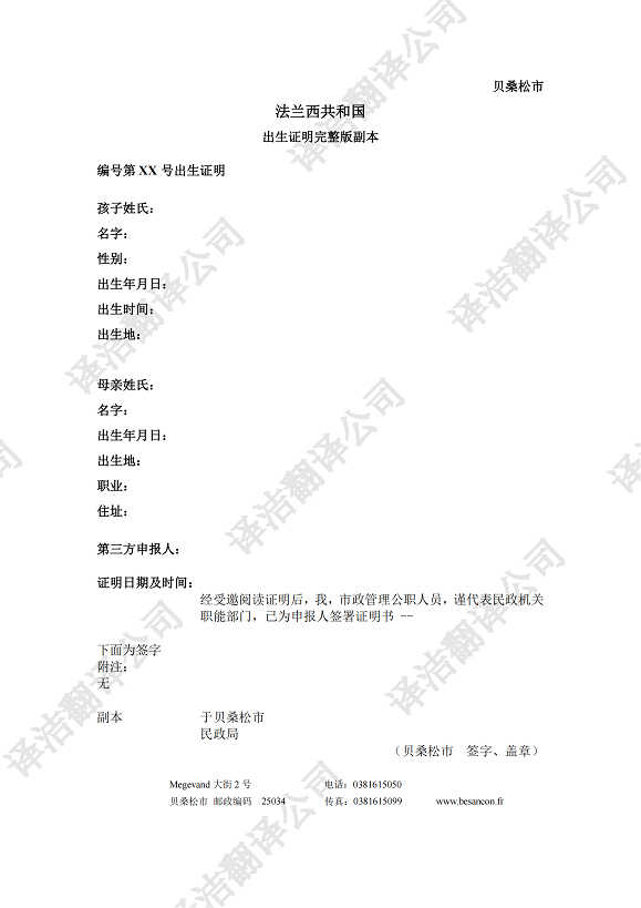 天津翻譯公司|譯潔翻譯---法國(guó)出生(shēng)證明(míng)翻譯案例